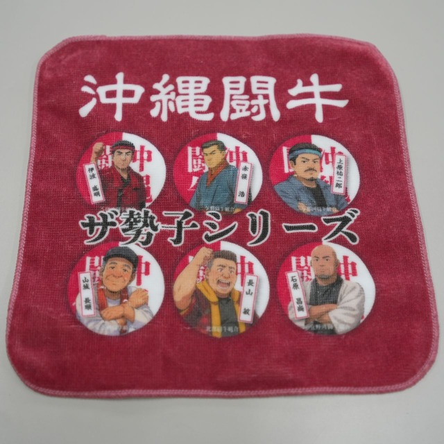 闘牛ファンにはたまらない!沖縄闘牛の勢子が大集合! 連動するオリジナル缶バッジと一緒にゲットしよう! パイルが短く高密度で織られているので、毛羽立ちが少なく滑らかな手触り! 20cm×20cm 綿100% PDKコラボステッカーもプレゼント!